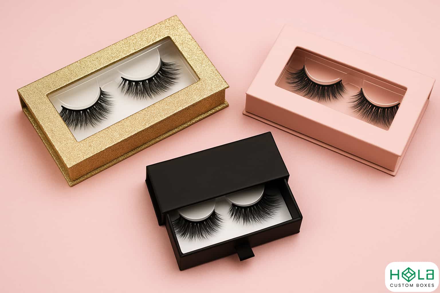 At Hola Custom Boxes, we offer endless style possibilities for eyelash packaging, including:
