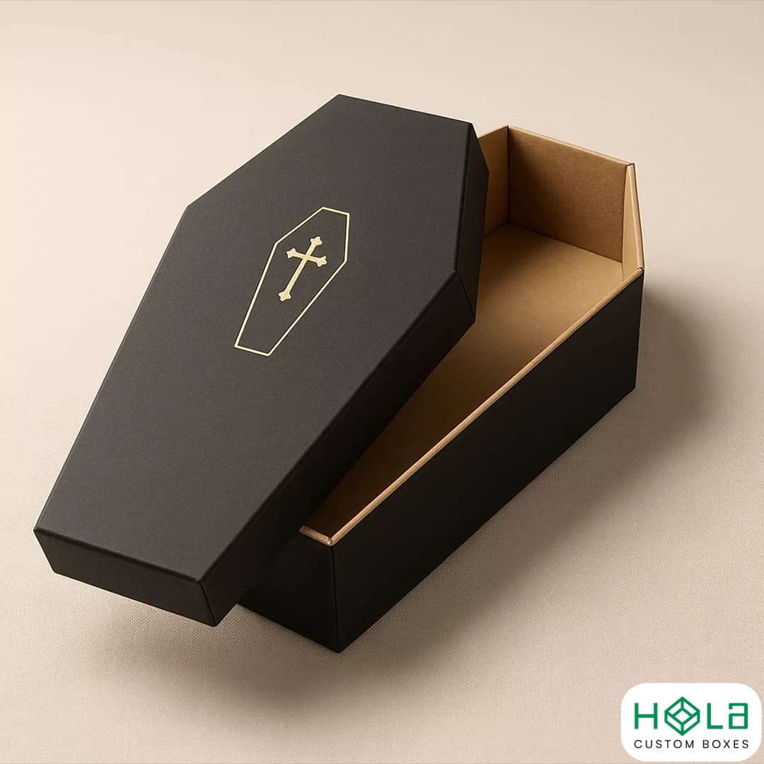 At Hola Custom Boxes, we specialize in creating custom coffin boxes and coffin shaped packaging that make your products unforgettable. Based in Dallas, Texas, we help brands across the USA stand out with packaging that blends luxury design, durability, and eco-friendly materials. Whether you need coffin shaped gift boxes, retail display packaging, or promotional designs, our team ensures your packaging tells a story customers can’t ignore.